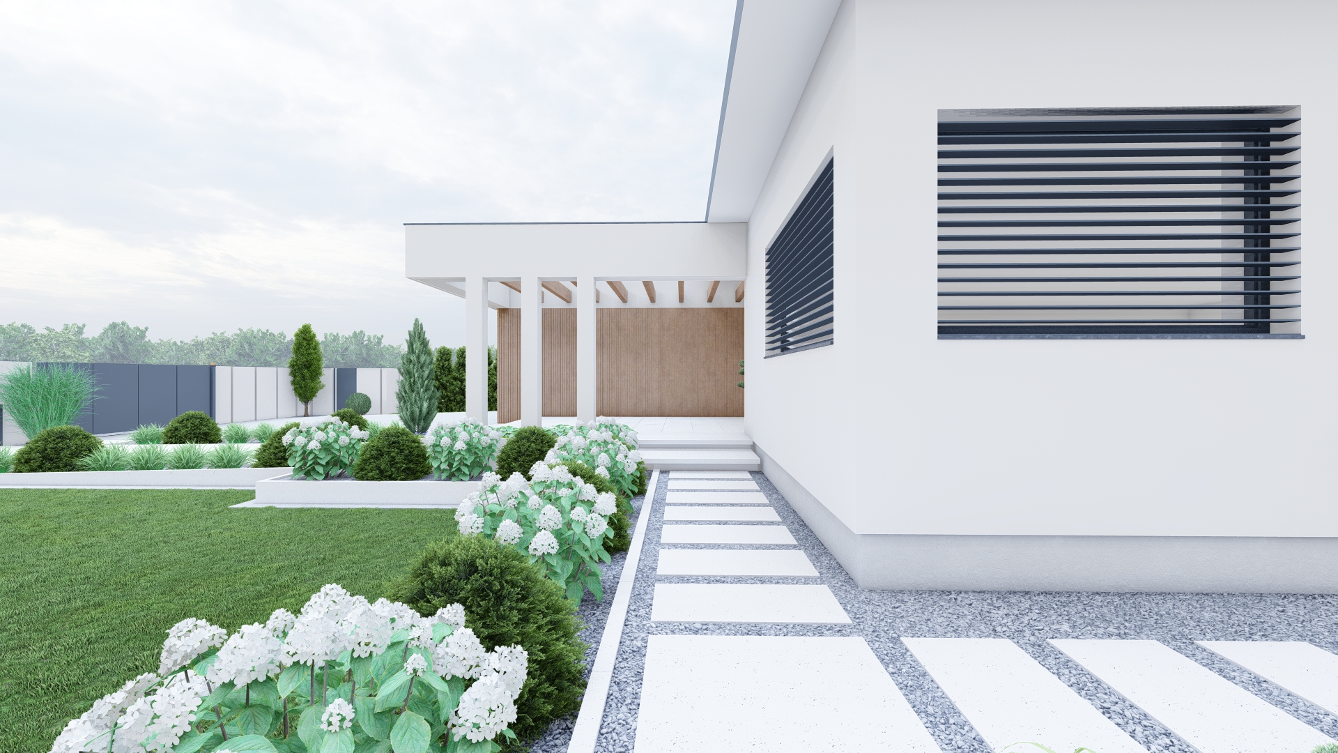 Zwiększenie prywatności dzięki przemyślanemu ogrodzeniu i nasadzeniom.