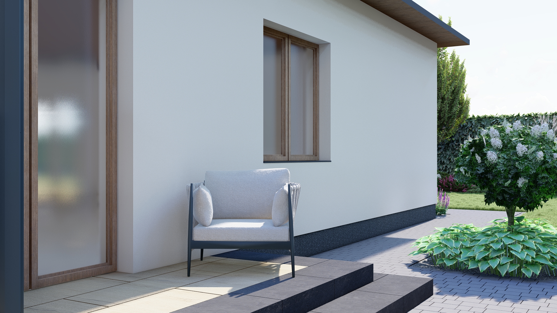 projekt oświetlenia kierunkowego i dekoracyjnego – zarówno w strefie frontowej, jak i wewnętrznej części ogrodu,