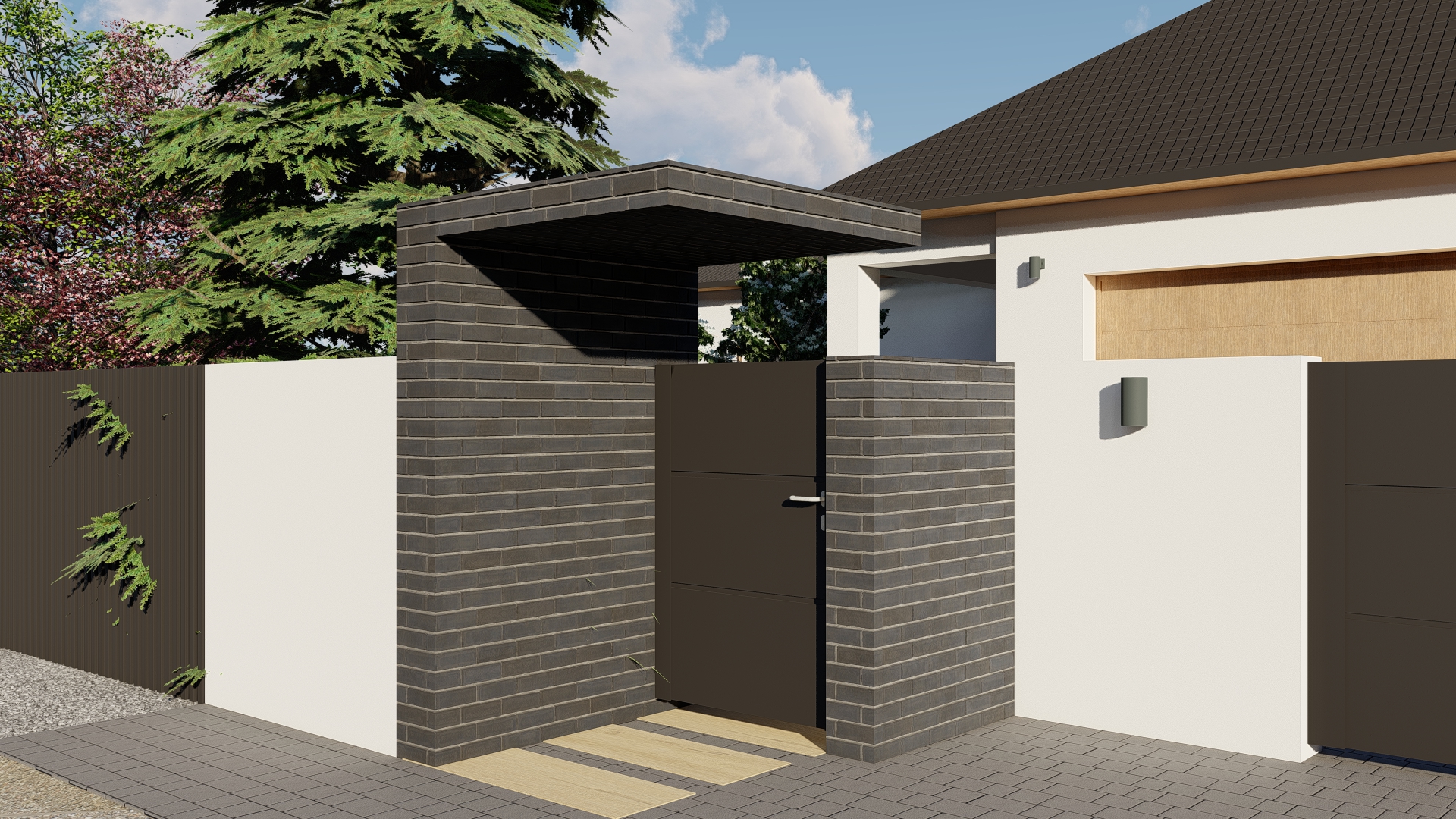 wizualną koncepcję ogrodzenia frontowego, dopasowaną do stylu architektury,
