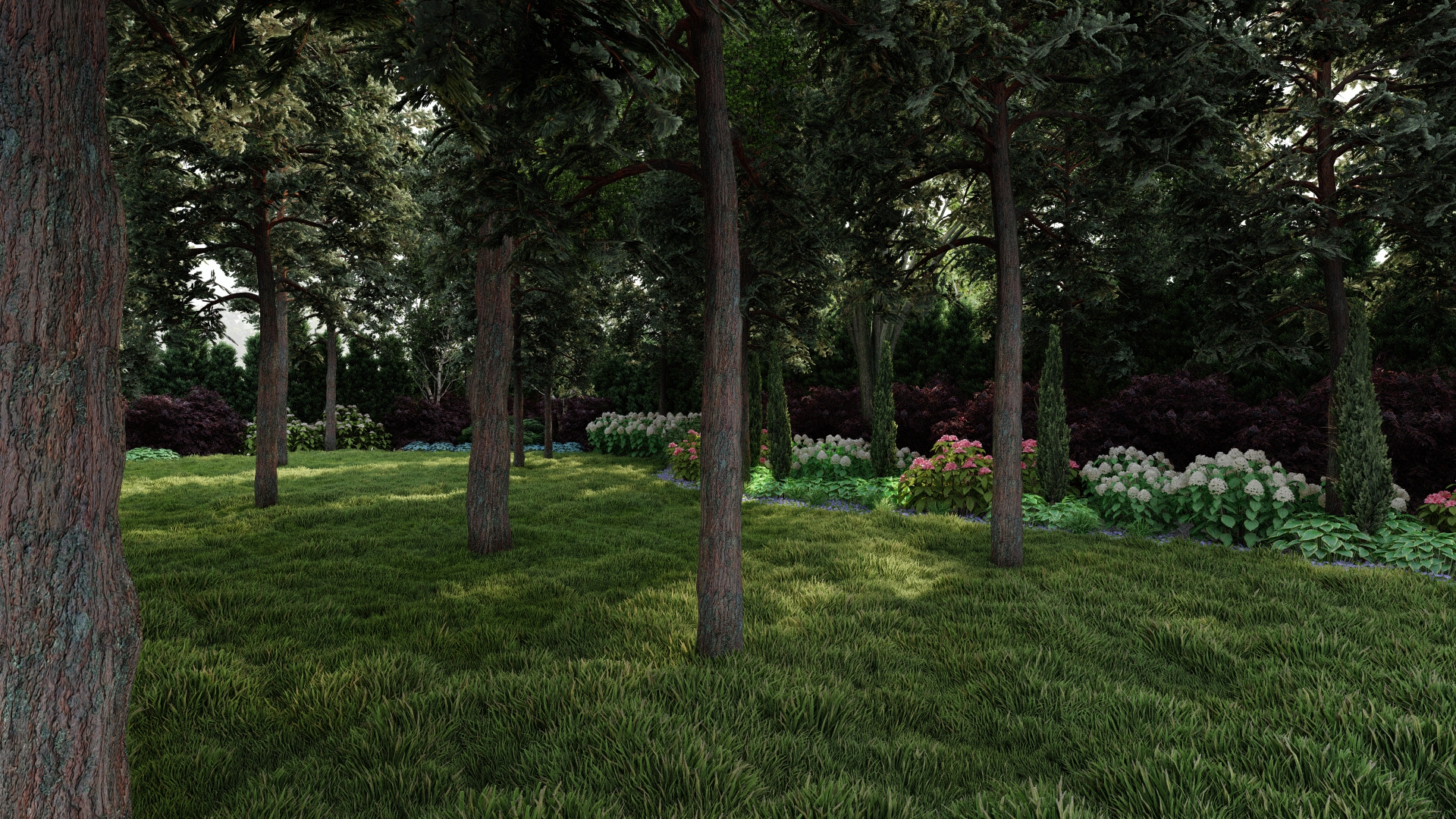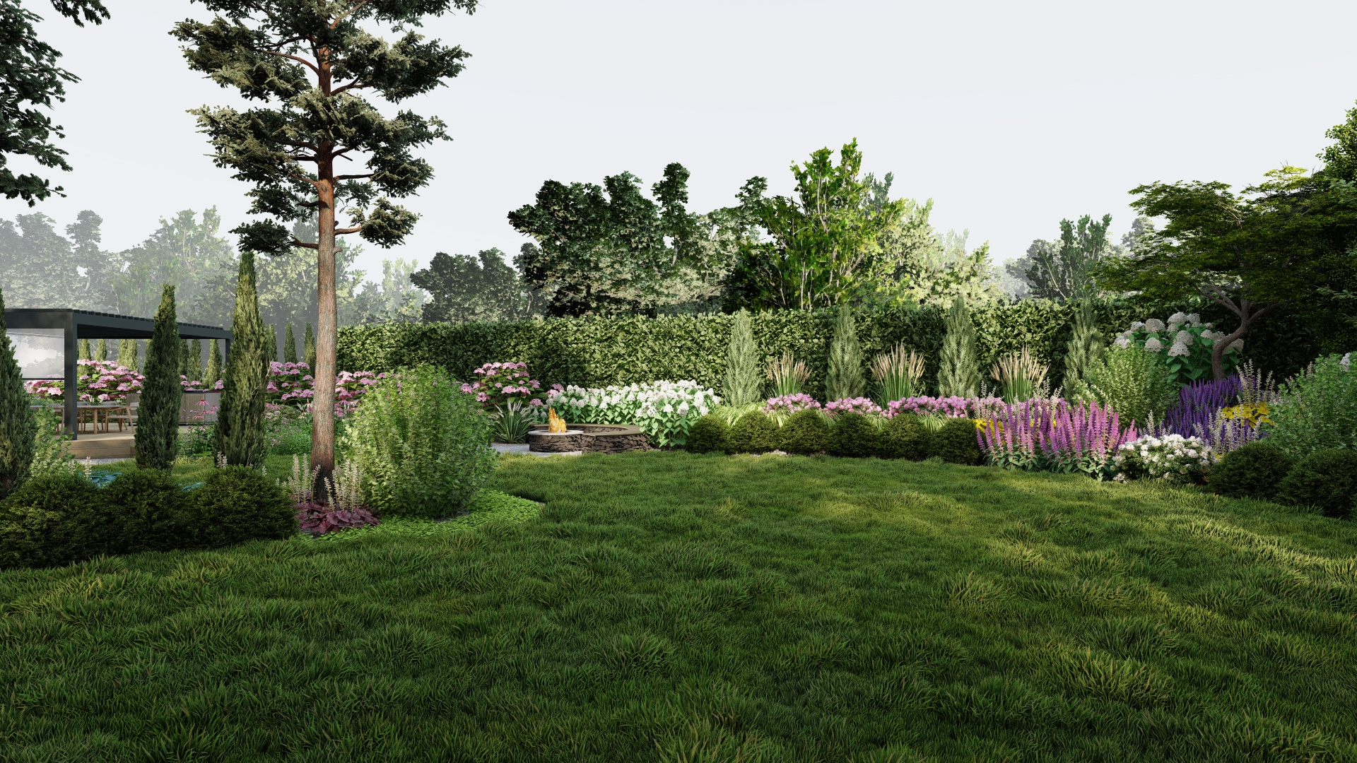 Ten projekt ogrodu leśnego to idealna propozycja dla miłośników natury, prostoty i wygody. Ogród został zaprojektowany w stylu swobodnym, z uwzględnieniem istniejącej zieleni i warunków siedliskowych – w tym lokalizacji o charakterze leśnym.