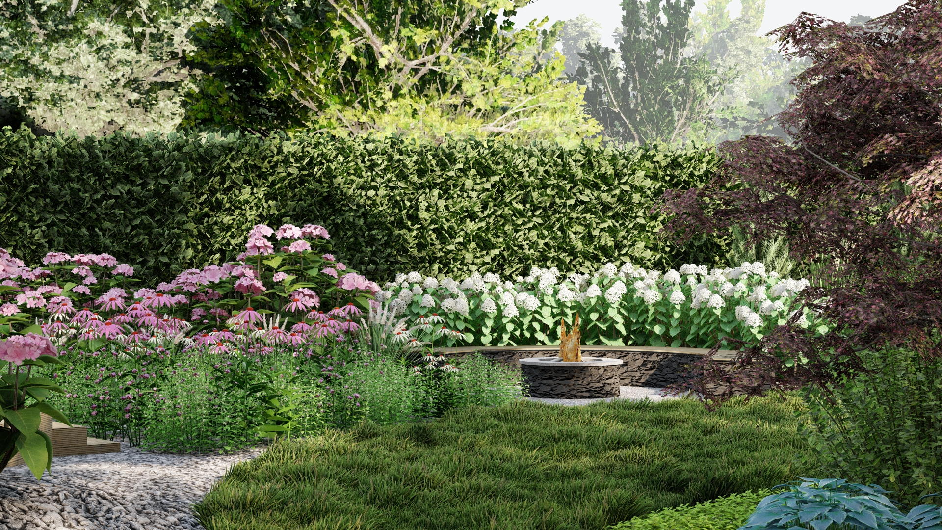 Przestrzeń jest atrakcyjna przez cały okres wegetacyjny, a jednocześnie łatwa w pielęgnacji – dzięki odpowiednio dobranym gatunkom i zastosowaniu ściółkowania.