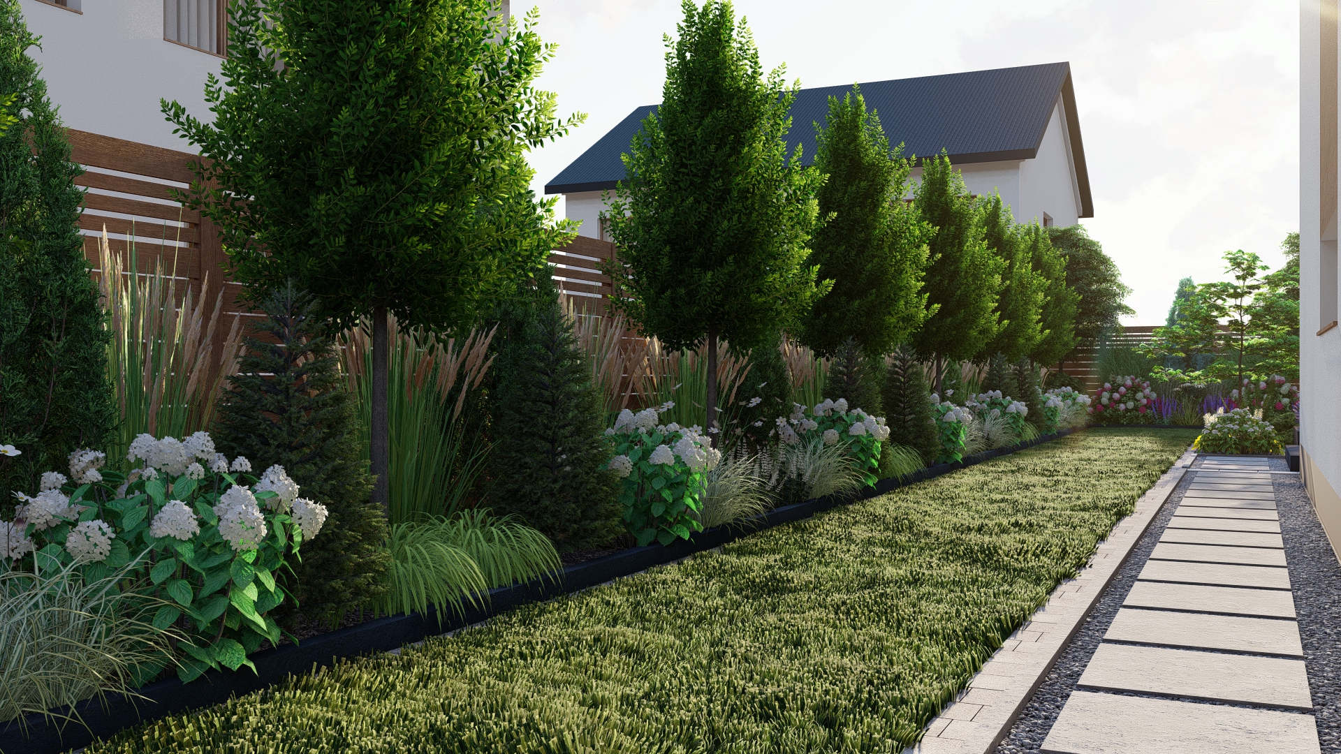 Zaprojektowany z myślą o właścicielach, którzy chcą cieszyć się estetyką przez wszystkie pory roku przy minimalnym nakładzie pracy.