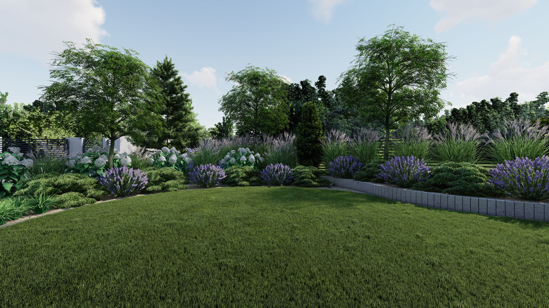 • Ogród jest atrakcyjny niezależnie od pory roku – kwitnie w sezonie wegetacyjnym, a zimą zachowuje strukturę i estetykę.