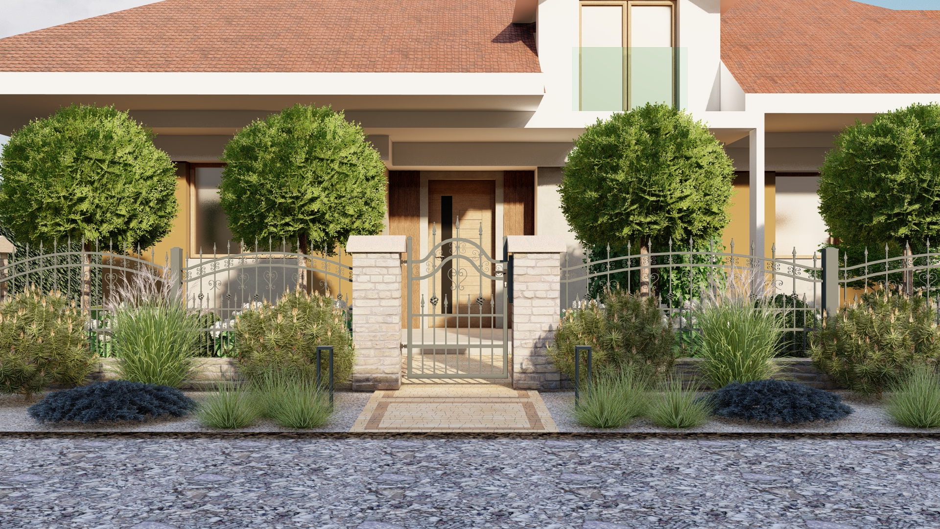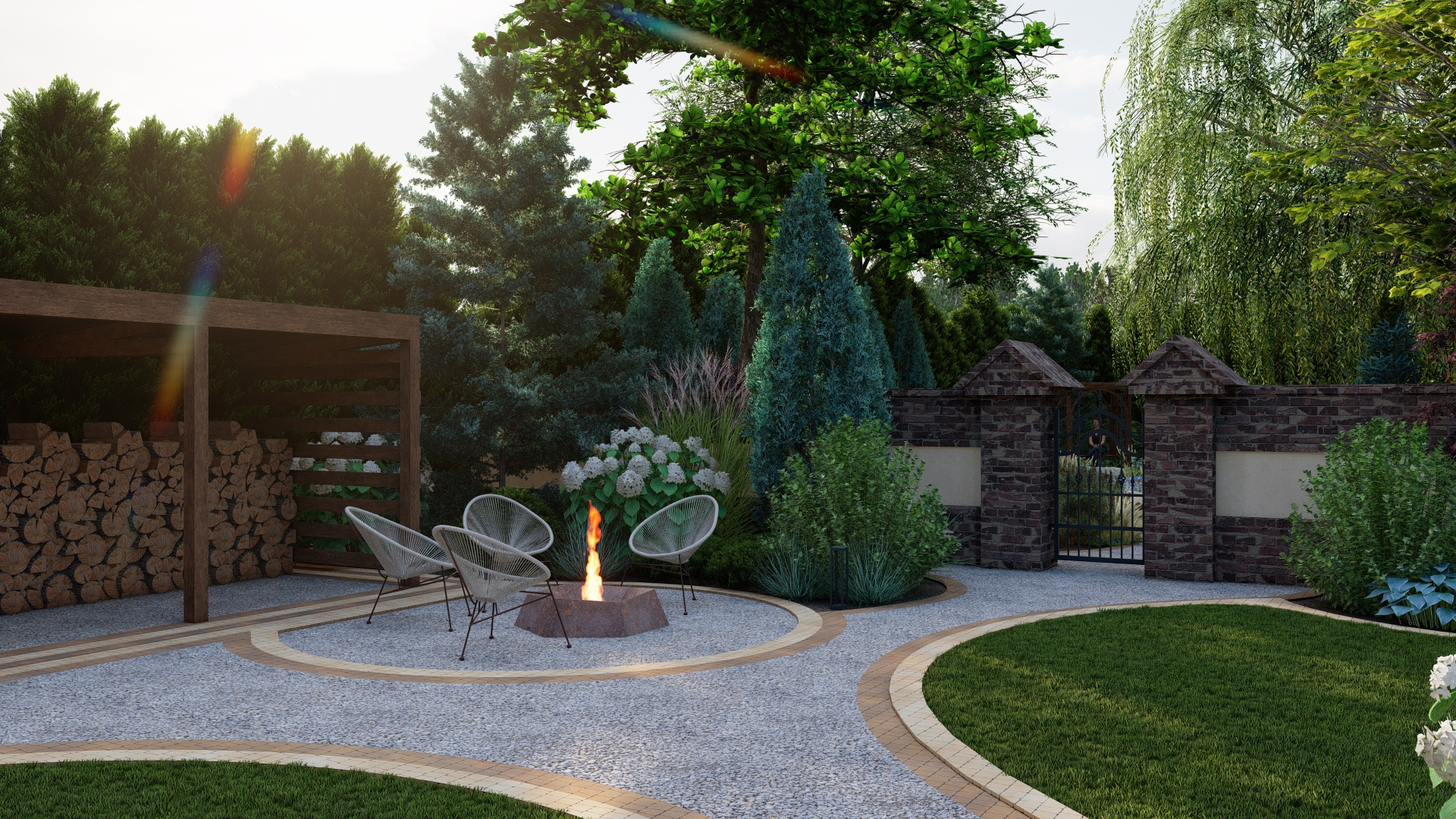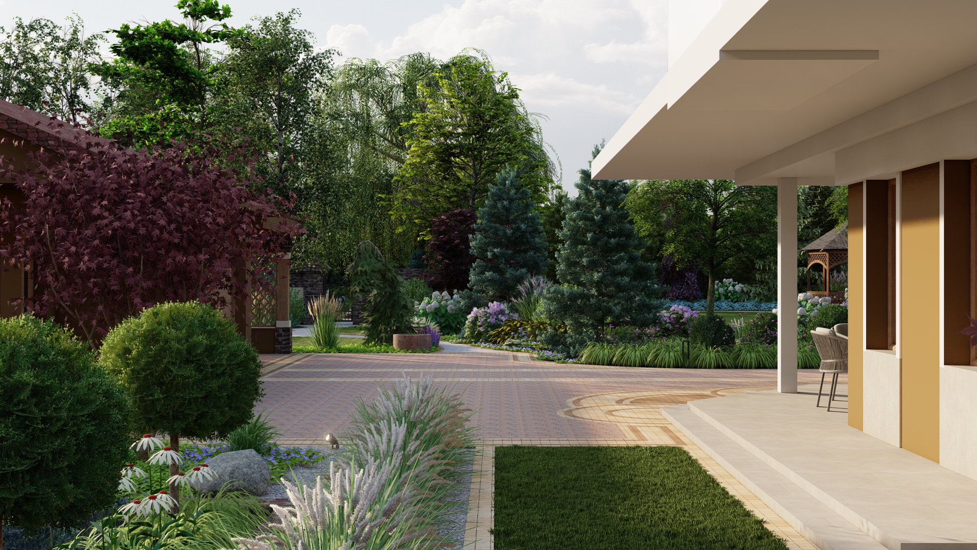 Wykonanie ciągów komunikacyjnych ogrodu głównego – płynne prowadzenie pomiędzy strefami.